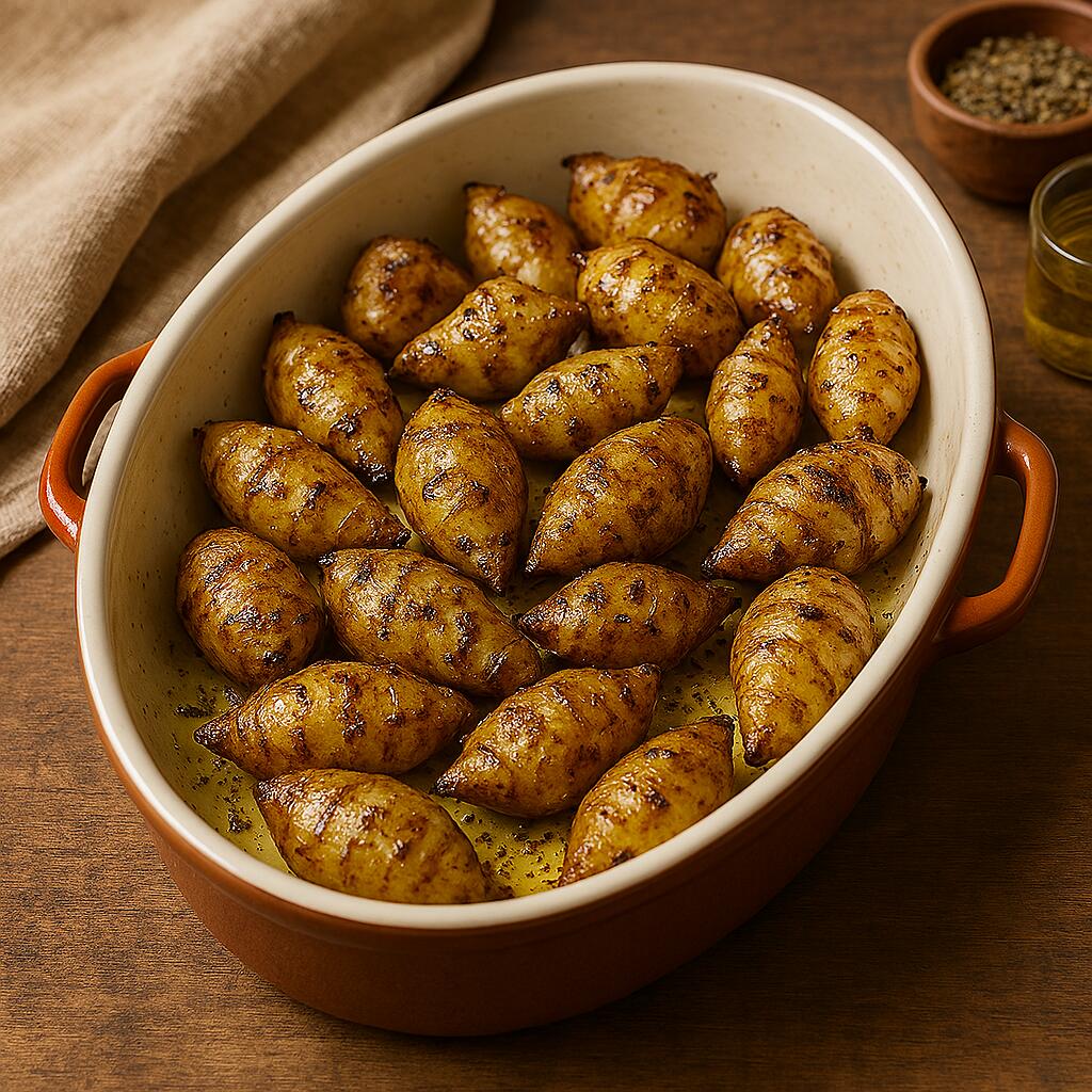 Marinierte Gourmet-Topinambur in eine feuerfeste Form geben und im Ofen bei 180° C 25 min backen.